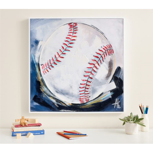Throw young sluggers a curveball with art inspired by their favorite sport. The framed canvas print is hand embellished with painted details and brushstroke textures, making each piece one of a kind.