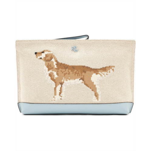 [US] POLO Ralph Lauren Lauren Ralph Lauren Dog-embroidered Canvas Large Pouch