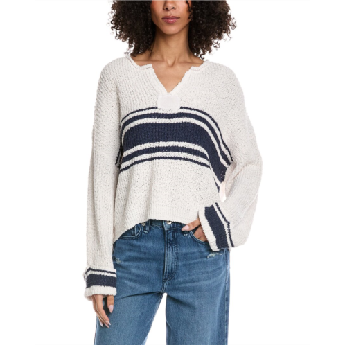 - Contrast Stripe V-Neck Sweater In Ivory And Navy With Dropped-Shoulder Sleeves
