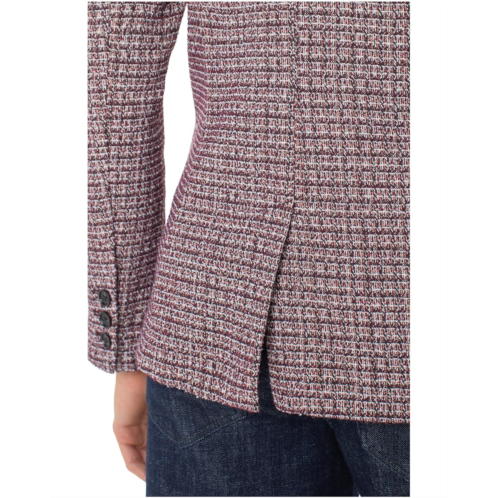 - Introducing the Liverpool Los Angeles Boyfriend Blazer W/ Removable Hood, a perfect blend of style and functionality. The hood, complete with drawstrings, provides versatility during transitional weather, while the button closure adds a touch of sophistication. The beautiful knit plaid jacket has a notched lapel collar, long sleeves, and a back vent.