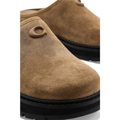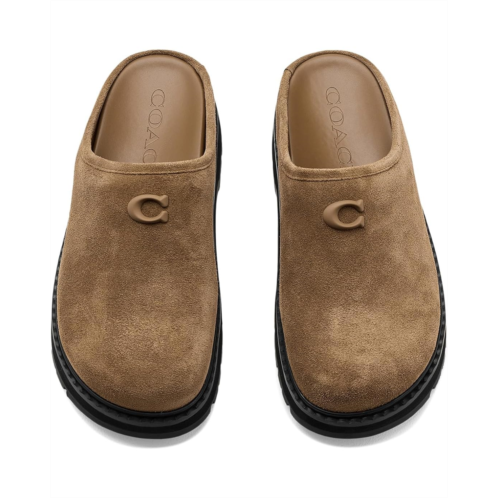 - A new pace for your wardrobe, COACH Suede Sport Clogs. Designed with a rich suede upper, lining, and insole, these clogs wrap your feet in soft, premium texture that feels as good as it looks. The easy slip-on design makes them your go-to for quick outings, while the round toe offers a relaxed, roomy fit for all-day ease. With a mid-top silhouette, they bring just the right amount of structure and style to elevate even the simplest outfits. The durable polyvinyl chloride (PVC) outsole ensures steady steps and long-lasting wear, whether you're running errands or catching up with friends.