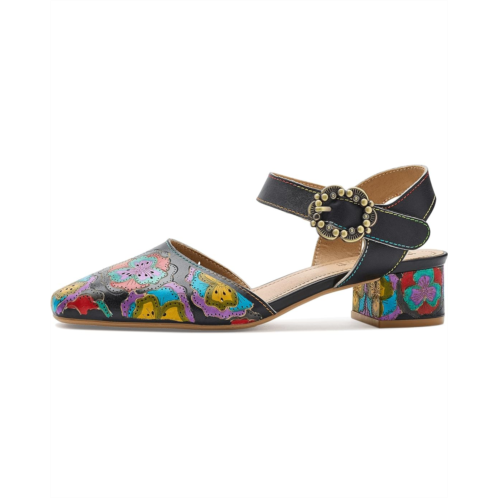 - Step into elegance, choosing the L`Artiste by Spring Step Funferbiz sandals. The hand-painted, floral leather closed-toe shoe is crafted for women seeking both artistry and comfort. This exquisite design features a vibrant floral pattern meticulously painted on the leather, blending vintage inspiration with contemporary flair. A graceful ankle strap with an antique-inspired medallion buckle adds a whimsical touch, while the low-block heel carries the hand-painted design for a truly distinctive look. The secure hook-and-loop closure ensures easy adjustability and a snug fit, making these shoes perfect for strolling city streets or enhancing your casual or evening attire. The Funferbiz shoe by L`Artiste effortlessly combines sophisticated style with all-day wearability, making it a versatile addition to your wardrobe.
