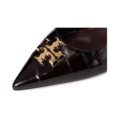 - Get ready to step out in style choosing the Tory Burch Eleanor Pumps 65MM. Made with premium leather upper and lining, these pumps are designed for both comfort and durability. The sleek pointed toe design and stiletto heels give you an effortlessly chic look, perfect for any occasion. And let's not forget the iconic Tory Burch logo embellished on the upper - a true statement piece.