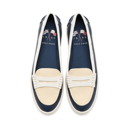 - Experience the perfect balance of iconic design and contemporary comfort wearing the Cole Haan Nantucket Drift Penny. Crafted with a premium leather upper, these elegant flats deliver a sophisticated look that easily complements both business casual outfits and polished everyday ensembles. The breathable textile lining keeps your feet feeling fresh and comfortable, while the cushioned Ethylene Vinyl Acetate insole provides supportive softness for all-day wear. Designed with a lightweight Ethylene Vinyl Acetate outsole, these flats offer flexibility and effortless movement wherever the day takes you. The easy pull-on design ensures convenient wear, making them perfect for busy mornings or quick outfit changes. Re-engineered with Cole Haan's signature attention to comfort and craftsmanship, the Nantucket Drift Penny flats bring together timeless penny loafer styling with a chic demi silhouette.