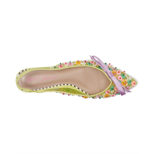- Slip into floral fun with the Blue by Betsey Johnson Laylah shoes. These unique and stylish flat shoes will add a playful flair to any outfit, featuring bow accents for a fun and sweet touch. They are made of a PVC upper and rubber insole. The slingback strap ensures a secure fit.