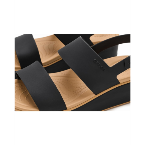 - Strike the perfect balance between fashion-forward design and comfortable lift, wearing the Crocs Brooklyn Low Wedge Sandals for confident strides. These open round-toe sandals come with soft, flexible Matlite uppers, LiteRide foam footbeds for superior all-day comfort, and an elegant two-strap silhouette with heel straps for total security. The deep heel cups and a raised insole profile ensure added support & stability, while the adjustable smart buckle heel straps with pushpin closures make on/off a cinch.