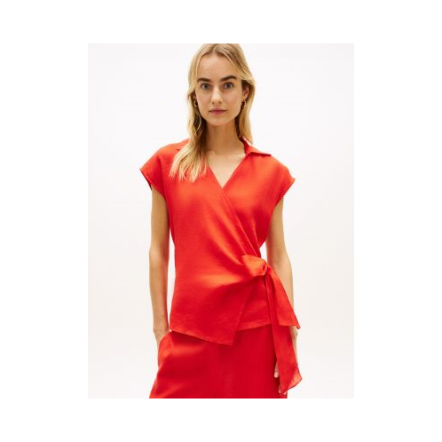 Tommy Hilfiger women's shirt. Our sleeveless top is made from yarn-dyed linen for rich color and a breathable feel. Designed in a functional wrap silhouette with a spread collar and side tie, it's sure to become a regular player in your casual yet polished wardrobe rotation.