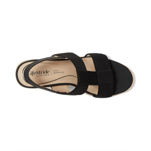 - Walk tall in style: LifeStride Tallulah wedge espadrille sandals are your new go-to for effortless elegance. Restyle your wardrobe with these chic sandals, featuring polyester upper and stretch gore straps for a flexible, secure fit. The open round toe and heel sling strap bring modern flair, while the jute-wrapped espadrille wedge adds timeless elegance. Engineered with Soft System comfort technology, Tallulah offers superior cushioning, shock absorption, and pressure distribution for all-day support and flexibility. A foam insole cradles your foot, while the synthetic rubber outsole delivers traction and stability for confident strides.