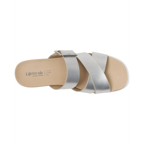 - Perfect for travel or every day, the LifeStride Getaway, a versatile women's strappy sandals have a trend-forward, yet classic feel. Platform sandals for women designed with faux leather straps, a soft square open toe, decorative buckle, and lightweight design. Linings crafted from partially recycled materials. Trusted Soft System comfort technology for unmatched cushion, support, and flexibility in every pair. Traction sole for extra stability.