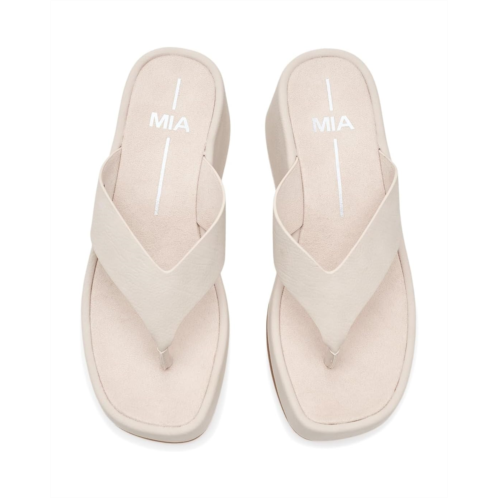 - A nod to nostalgia, the MIA Niccola Platform Sandal blends modern height with effortless, minimalist style. It comes with a faux leather upper in a thong style, faux leather lining, and a faux leather insole. Crafted with vegan leather, this slip-on sandal brings a fun and comfy lift to sunny days, beach trips, and all your easy summer outfits.