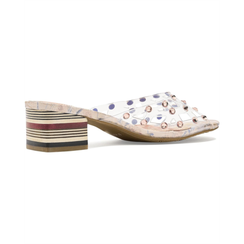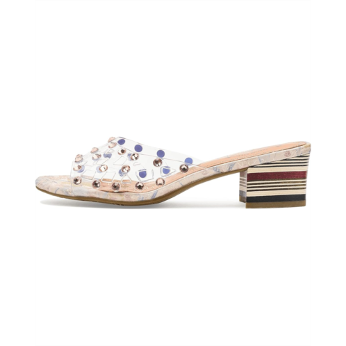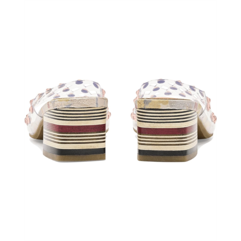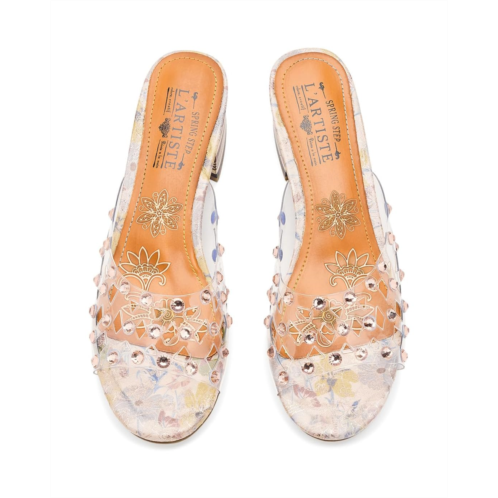 - Step into bold artistry with the L'Artiste by Spring Step Ontherox Sandals, where french-inspired design meets signature craftsmanship. The polyurethane upper features clear crisscross band shimmering with faceted crystal embellishments that create a dazzling effect, while the hand-applied rainbow stitching along the floral metallic faux leather insole showcases artisanal creativity. These slip-on sandals feature a stacked striped block heel that combines stability with modern style, offering both comfort and eye-catching flair. Whether dressing up casual denim or accentuating eveningwear, the open round-toe sandals are perfect for women ready to shine with originality and confidence. With every step, you wear more than sandals-you wear wearable art crafted to elevate your style.