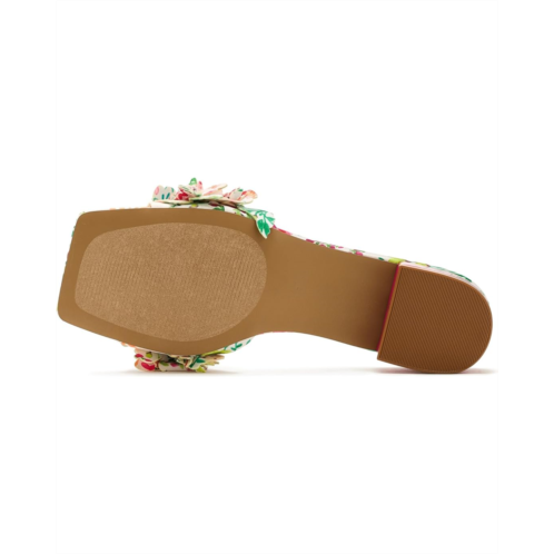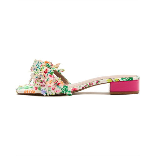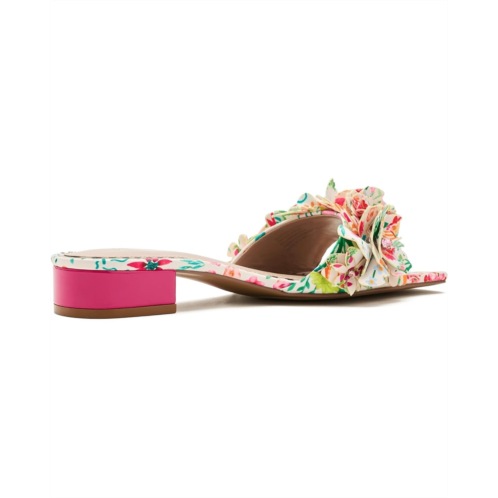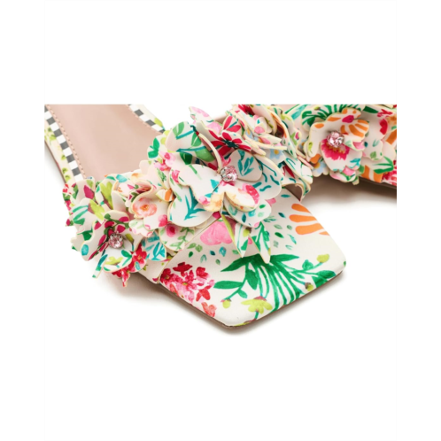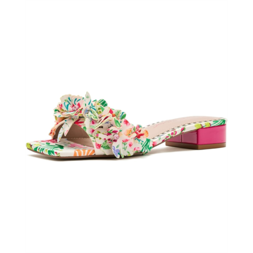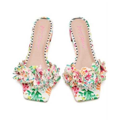 - Intricate floral details on a durable polyurethane upper make the Blue by Betsey Johnson Glorria Heel one of a kind. The open-squared toe heels are crafted with a polyurethane lining, rubber insole, and an easy slip-on style.