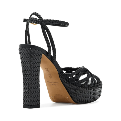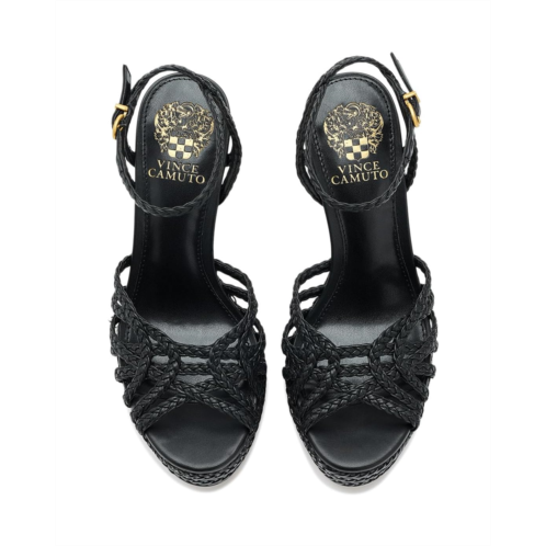 - The Vince Camuto Samlee Strappy Platform High Heel Sandals are bold platform sandals featuring a woven design with chunky block heels and an adjustable ankle strap for added support. These heeled sandals are designed with a faux leather upper, a polyester insole, and a polyester lining. Pair them with a sleek jumpsuit or a flowy maxi dress for a statement-making look that exudes confidence and style.