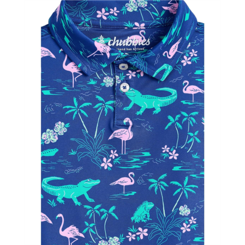 - The Chubbies Kids The Lil Swamp And Circumstance Performance Polo features a multi-colored swamp-themed print for an eye-catching twist. This polo shirt is designed with a collared neckline, short sleeves, and a straight hem. Made from a polyester blend, it has a two-button front closure. Get your kid ready for a party or casual outing with this printed polo.