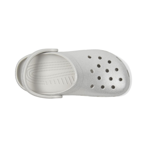 - Let the fun begin in the Crocs Classic Clog - Glitter. Croslite uppers are available in a variety of colors in patterns in a slip-on design with an adjustable heel strap and ventilation ports for breathability.